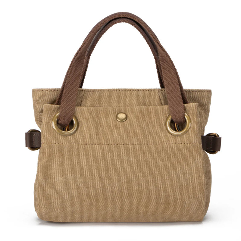 Conçu en toile de coton délavée et en croûte de cuir, ce sac offre un contact doux et naturel. Les anses, gainées en toile et en cuir, permettent un confort optimal à porter. Le sac comprend cinq poches intérieures dont deux zippées, une grande poche sur la face arrière avec un bouton aimanté, et une grande poche supplémentaire sur la face avant avec fermeture en garrot.