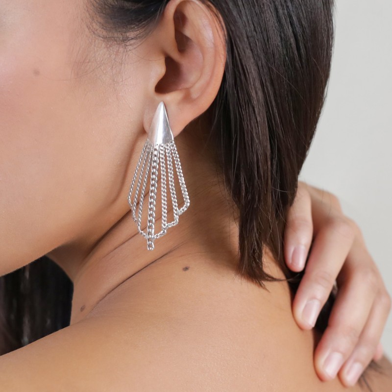 Boucles d'oreilles Longues Argentées signées ORI TAO bijoux.
