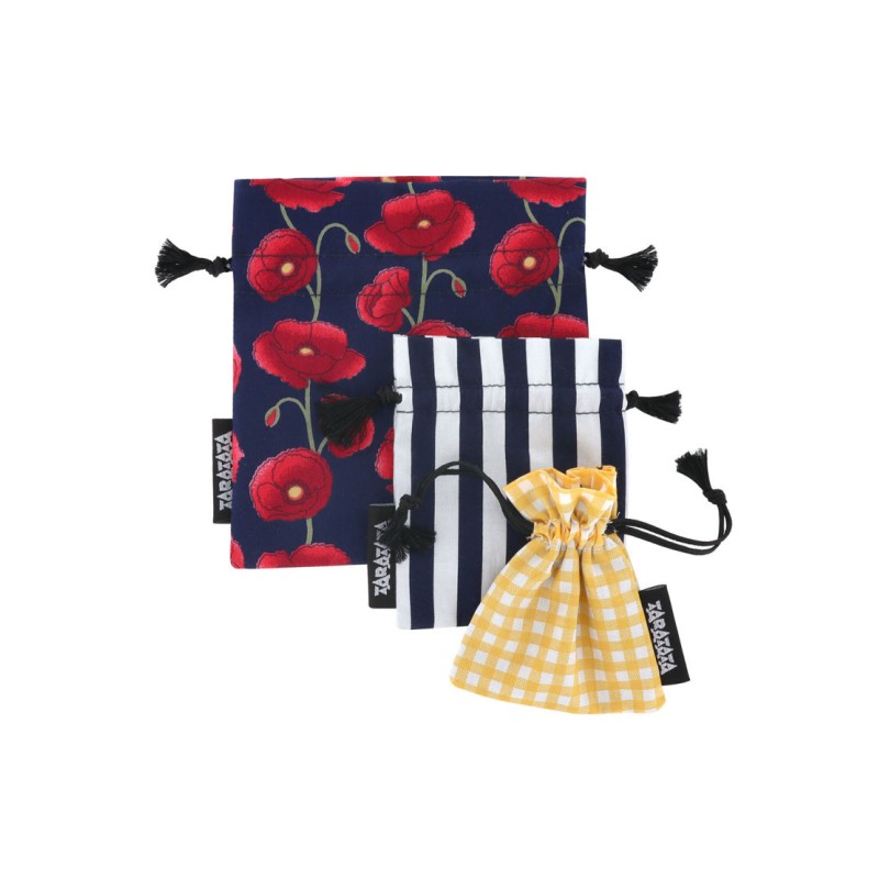 Chacun des bijoux TARATATA est livré avec une pochette en tissu aux motifs sans cesse renouvelés.