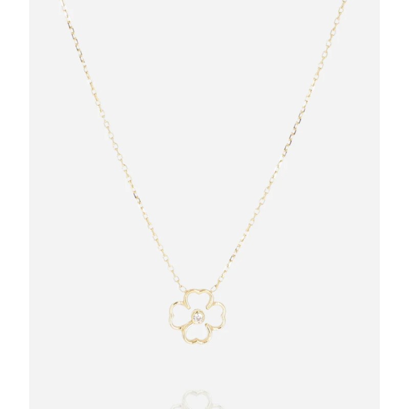 Collier Adone signé ZAG Bijoux orné d'une fleur en acier au milieu de laquelle se trouve un zirconium.
