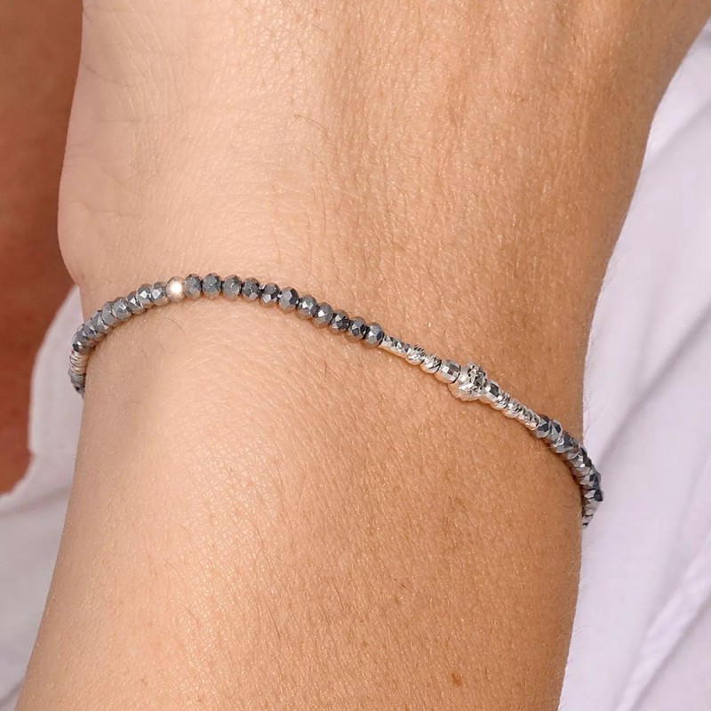 Bracelet Elastique Kandy Gris signé DORIANE bijoux. Le Bracelet Élastique En Argent 925 Gris Kandy est une création à la simplicité raffinée, imaginée dans l’Atelier DORIANE BIJOUX, situé dans le sud de la France. Composé de perles en verre, de perles Miyuki et d’Argent 925, ce bracelet d’un tour séduit par son équilibre entre sobriété et élégance.