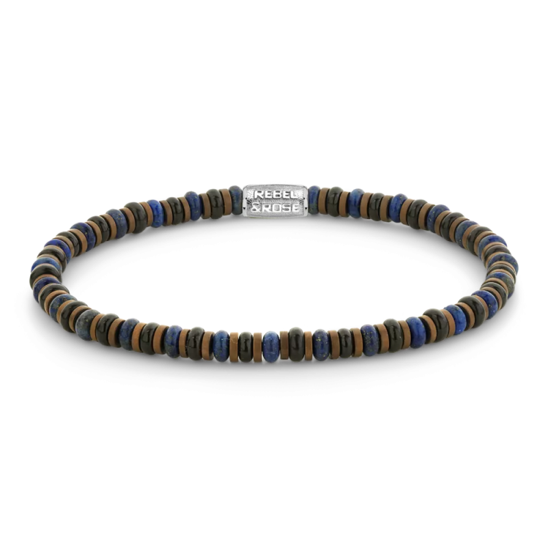 Bracelet extensible pour homme Slices Mixed Blue signé REBEL&ROSE composé de perles de pierres naturelles de 4mm et fabriqué à la main. Les bijoux Rebel & Rose se combinent facilement avec d'autres bracelets en