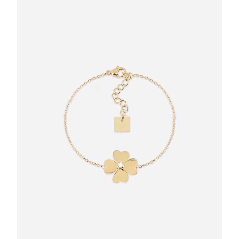 Bracelet Ajustable Giorgio signé ZAG Bijoux orné d'un trèfle à quatre feuilles en acier au milieu duquel se trouve un zirconium