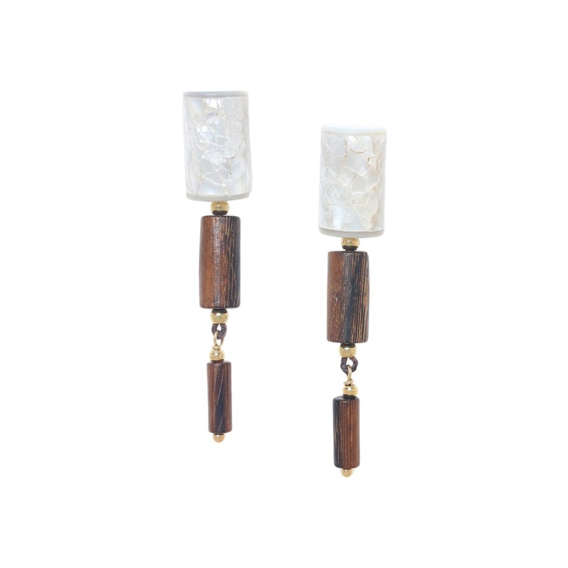 Composition : Nacre dorée, Bois de Roblès, Laiton sans nickel traité contre les allergies.