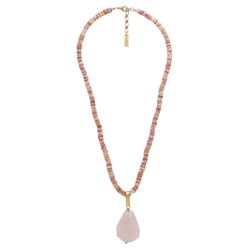 Collier Spiaggia Rosa signé NATURE bijoux orné d’un pendentif en Quartz rose. Les boucles d’oreilles mêlent Pecten Nobilis à des perles de culture et au quartz rose pour un rose bord de mer qui éclaire le teint ; les colliers alternent perles, Heishi et éléments coquillage, du ras-de-cou délicat au collier plus présent. Les bracelets composés de Heishi multicolores et de perles créent un rythme doux, facile à superposer. Chaque pièce est légère, agréable et fidèle à l’ADN Nature Bijoux : des bijoux femme en matières naturelles, artisanaux, qui subliment vos tenues avec une élégance ensoleillée.