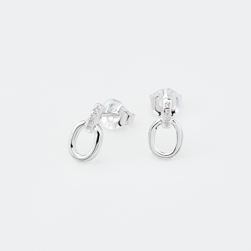 Boucles d'oreilles Ovales en Argent signées CANYON ornées d’Oxydes Blancs.
