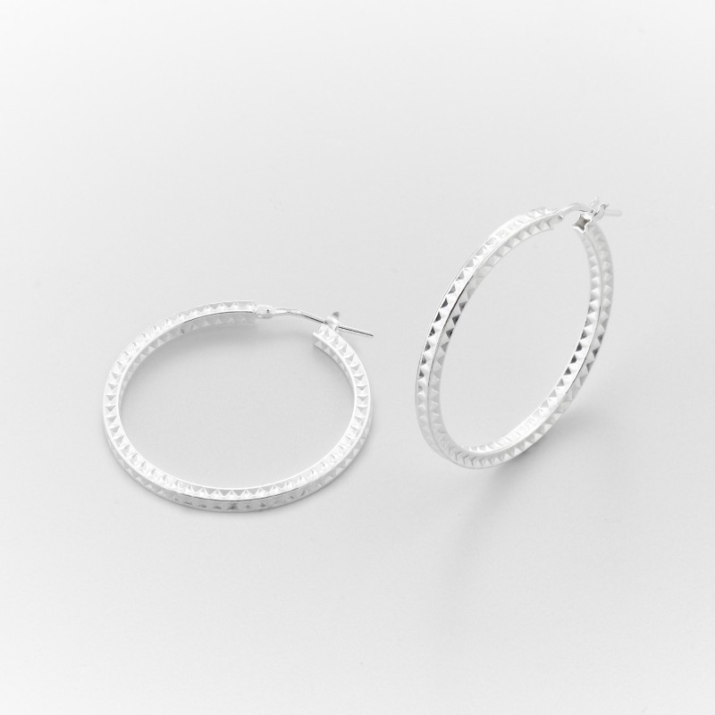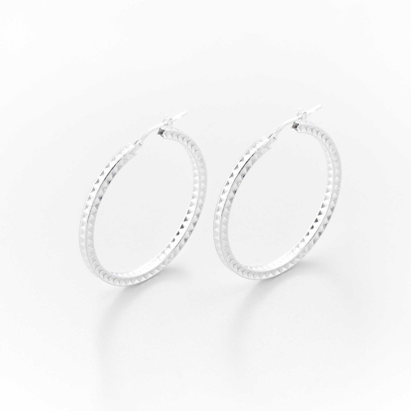 Boucles d'oreilles Créoles Argent signées CANYON France décorées de Mini Losanges.