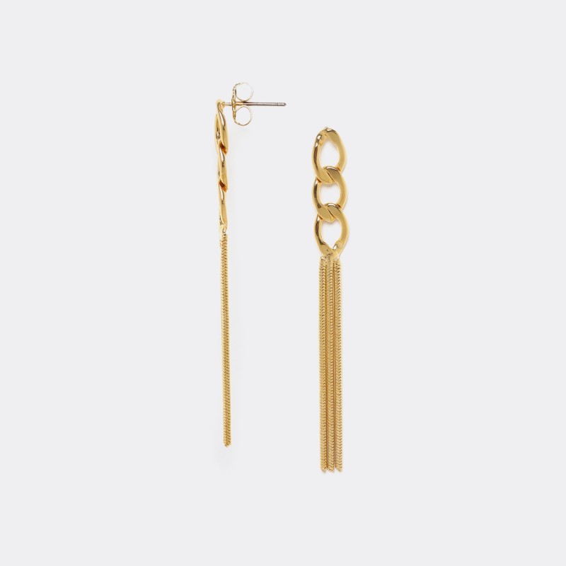 Boucles d'oreilles Poussoirs 3 chaînes dorées.