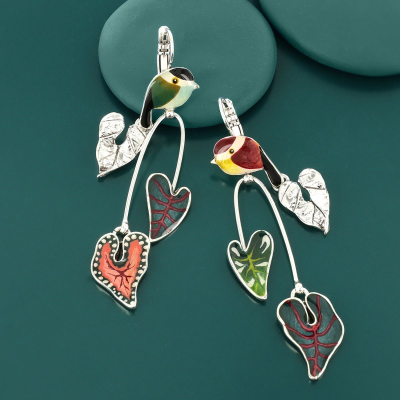 Composition : Résines colorées dont les motifs sont peints à la main, Métal sans nickel et traité contre les allergies.