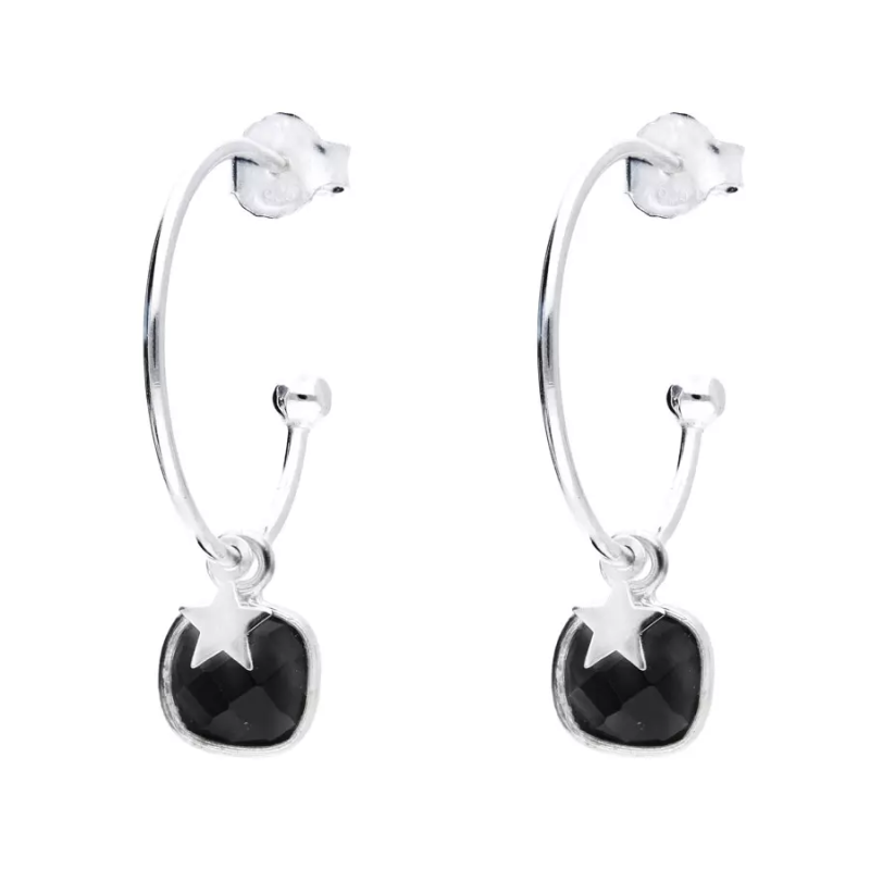Créoles Lovina signées DORIANE. Découvrez les nouvelles Créoles Lovina Étoile au diamètre de 2 cm ! Ces Créoles font partie des bijoux indispensables pour Sublimer votre look à la Perfection ! On revisite les Créoles Traditionnelles en y ajoutant un petit pendentif Carré en Pierre Semi-Précieuse de 6 mm : L'Onyx Noir. Une petite Étoile Rock en Argent vient s'ajouter à la Pierre, pour apporter encore plus de Brillance au modèle.