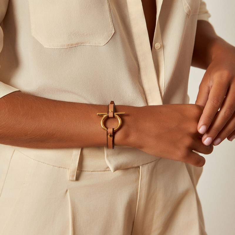 Composition : Cuir, Laiton Plaqué Or sans nickel et traités contre les allergies.