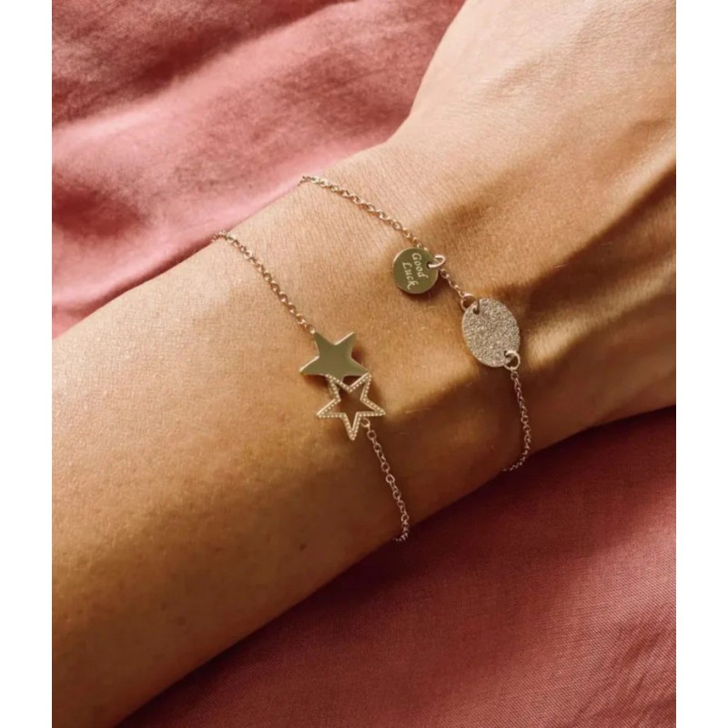 Bracelet Ajustable Star signé ZAG Bijoux sur lequel sont attachés deux étoiles de 8mm x16mm, l'une creusée et l'autre remplie.