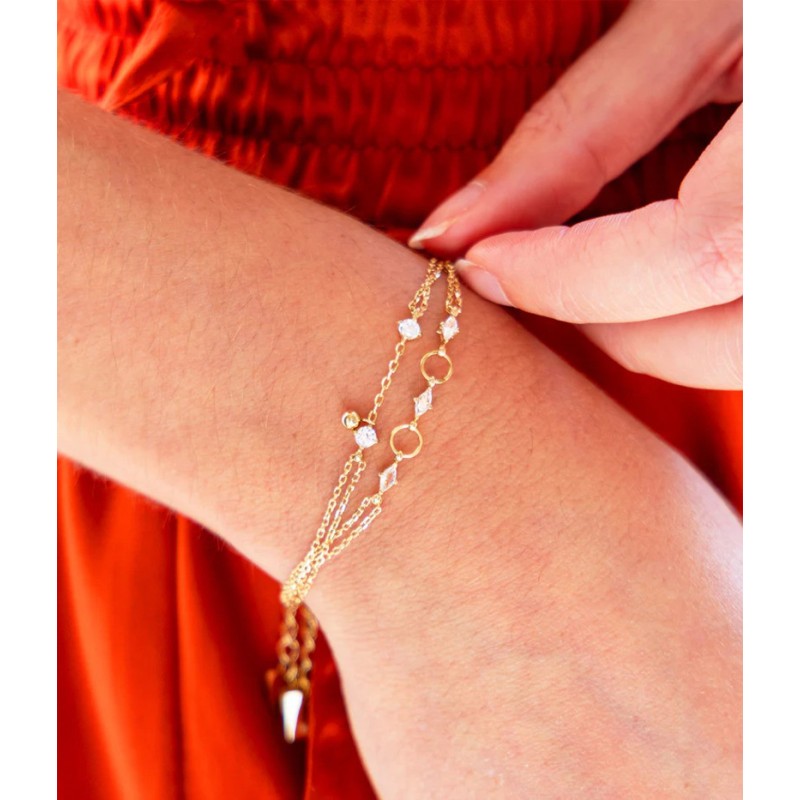 Découvrez sur bijoux-totem.fr, ce bracelet Deneba, qui allie finesse et éclat grâce à ses deux chaînes délicates ornées de zirconiums scintillants, pour sublimer votre poignet avec élégance.