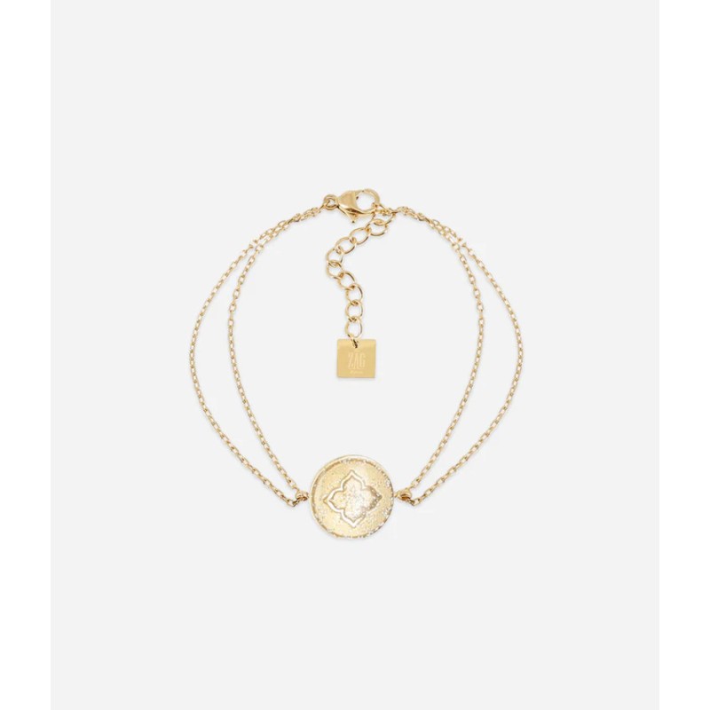 Bracelet Ajustable Root signé ZAG Bijoux composé d’un pendentif rond sur lequel est gravé un lotus représentant le Chakra Racine.