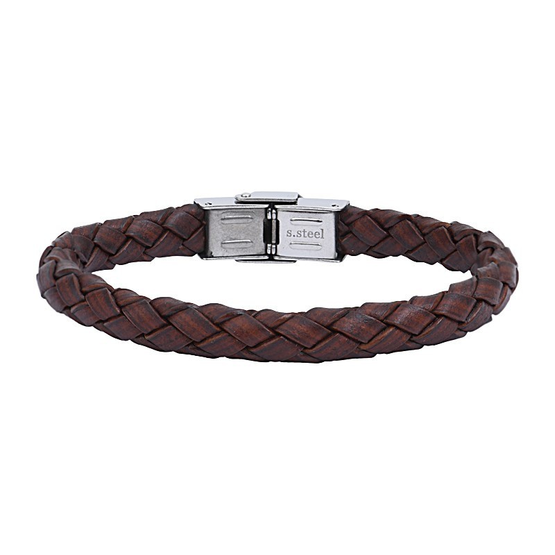 Bracelet homme Hector signé ELDEN Paris composé de cuir tressé avec un fermoir sécurisé en acier inoxydable.