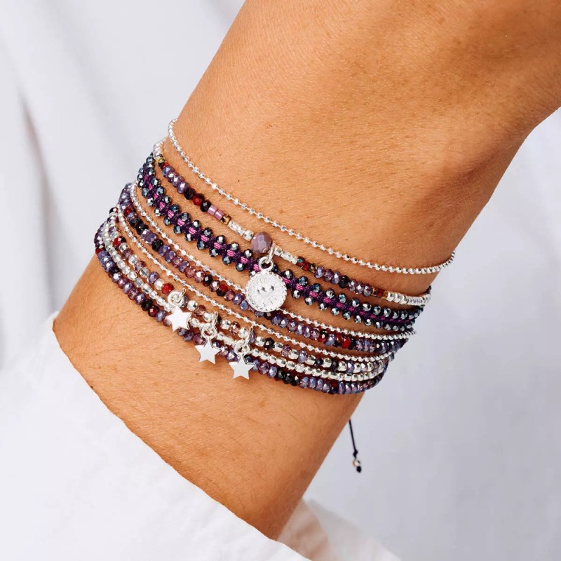 Découvrez sur Bijoux Totem, Ce Bracelet Élastique en Argent 925 Violet Prune vous séduira par ses perles de verre aux teintes violette, associées à l’éclat de l’Argent 925, idéal pour l’accumulation et parfait pour un style rock au quotidien ou comme cadeau élégant.
