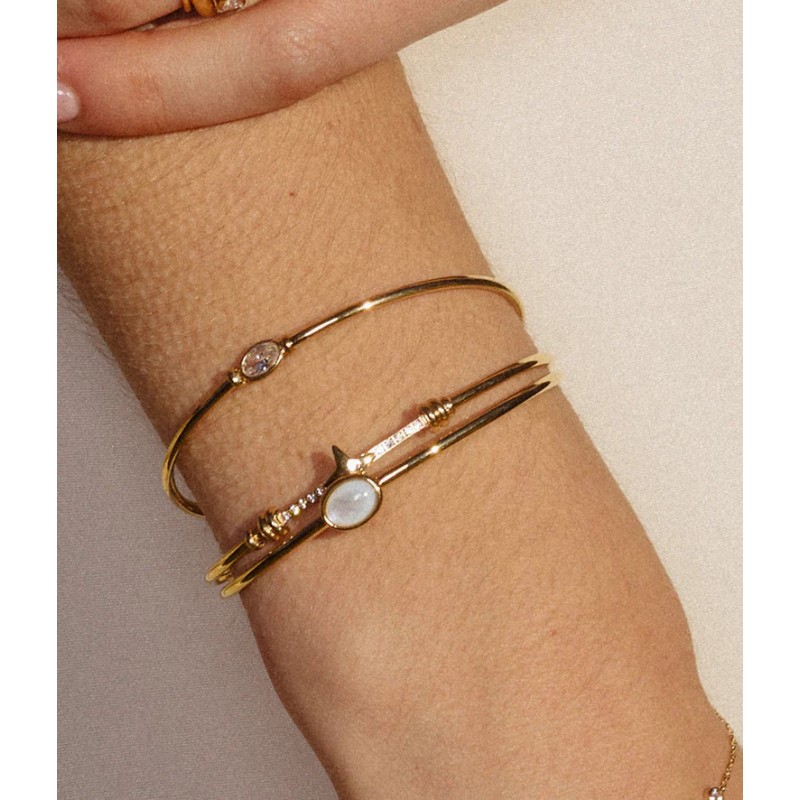 Bracelet Jonc Erbajolo signé ZAG Bijoux composé d'une tige arrondie sertie de zirconiums, au centre se trouve une étoile. La fermeture se fait avec un petite tige qui permet de l'enfiler facilement.