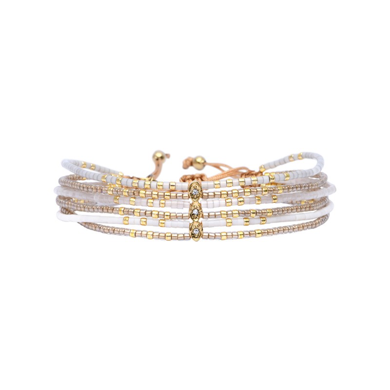 Bracelet ajustable Gaëlle multi rangs signé BELLE MAIS PAS QUE. Ce bracelet est composé de perles de Miyuki du japon et de charms inoxydables. Tout comme vous, chaque bijou est unique : chaque perle est tisée une à une, à la main et à l'aiguille durant une à plusieurs heures, voire parfois des jours pour certaines pièces.. Fermoir lien coulissant et ajustable à tous les poignets. Pensés pour tous, ces bracelets s'adaptent à chaque poignet grâce à leurs fermoirs lien coulissant et sont inoxydables. Ils vous suivent partout... Les perles de Miyuki sont réputées pour leur brillance et leur parfaite régularité. Elles sont gages de très haute qualité et de durabilité.