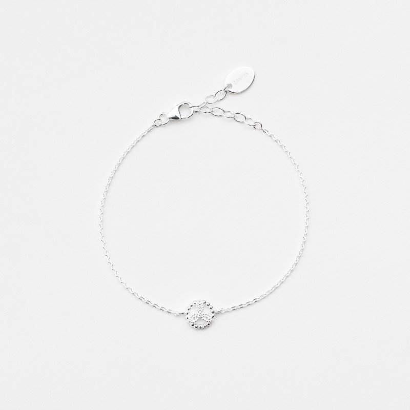 Bracelet en Argent signé CANYON France composé d'une chainette et en son centre de 3 petites navettes décores d'oxydes blancs et soudées par une pointe dans un cercle de micro boules