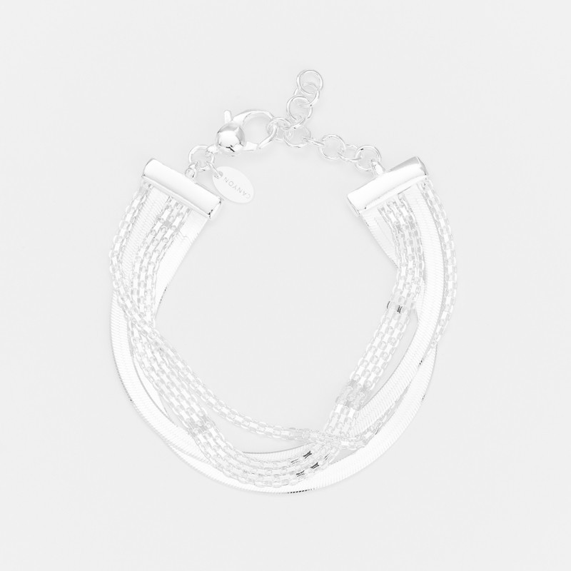Bracelet en Argent signé CANYON France composé de 4 chainettes dont 2 serpent plates