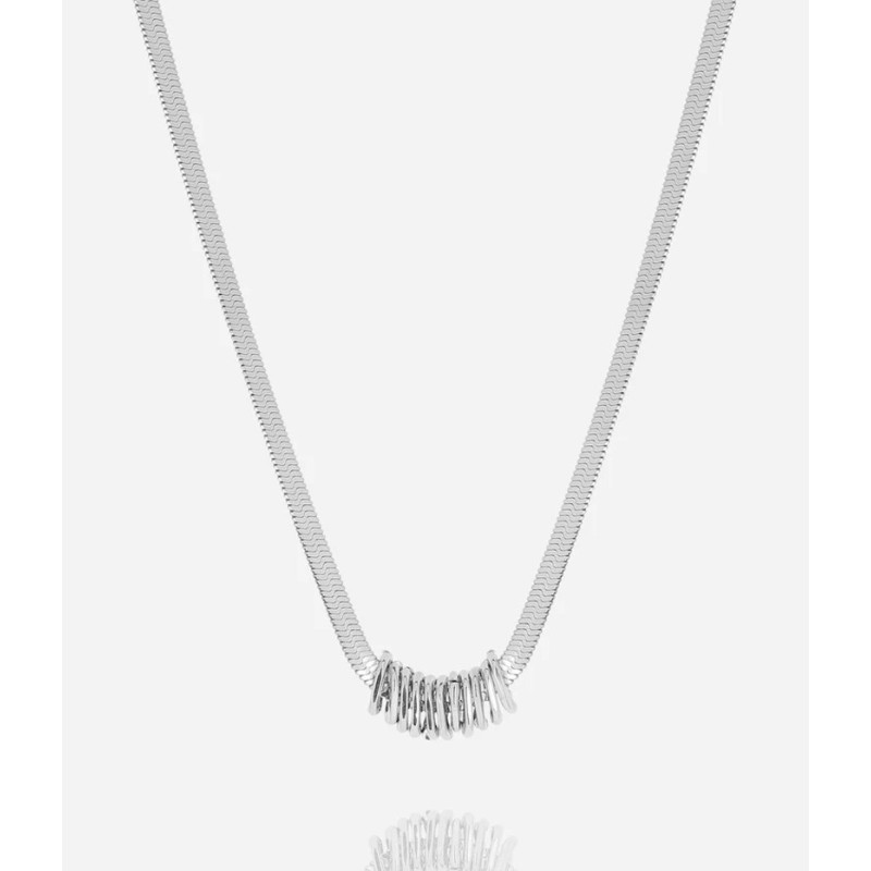 Découvrez sur bijoux-totem.fr, ce collier Luis, qui épouse le cou comme une seconde peau grâce à sa chaîne serpent en acier, sublimée de petits anneaux rectangulaires pour un effet graphique et raffiné.
