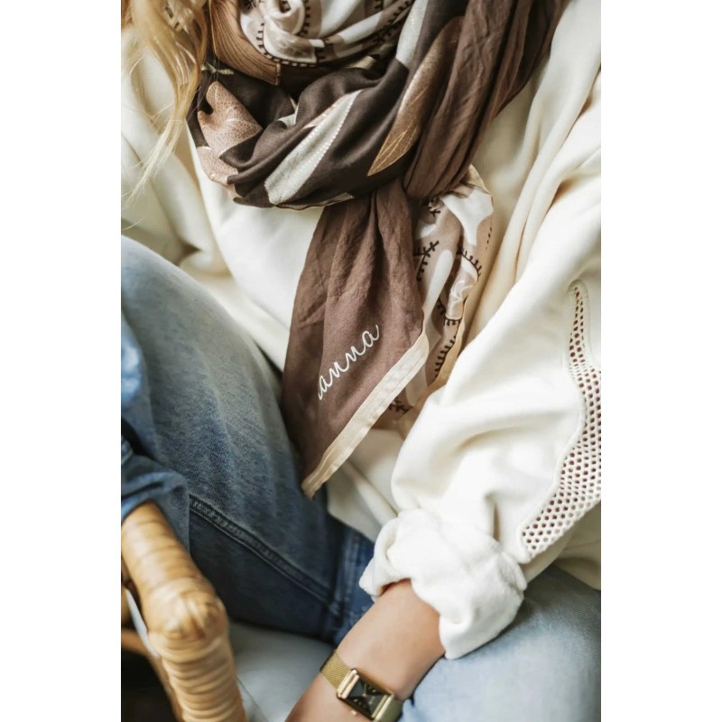 Chaque foulard Shanna est livré dans un sac en tissu réutilisable.