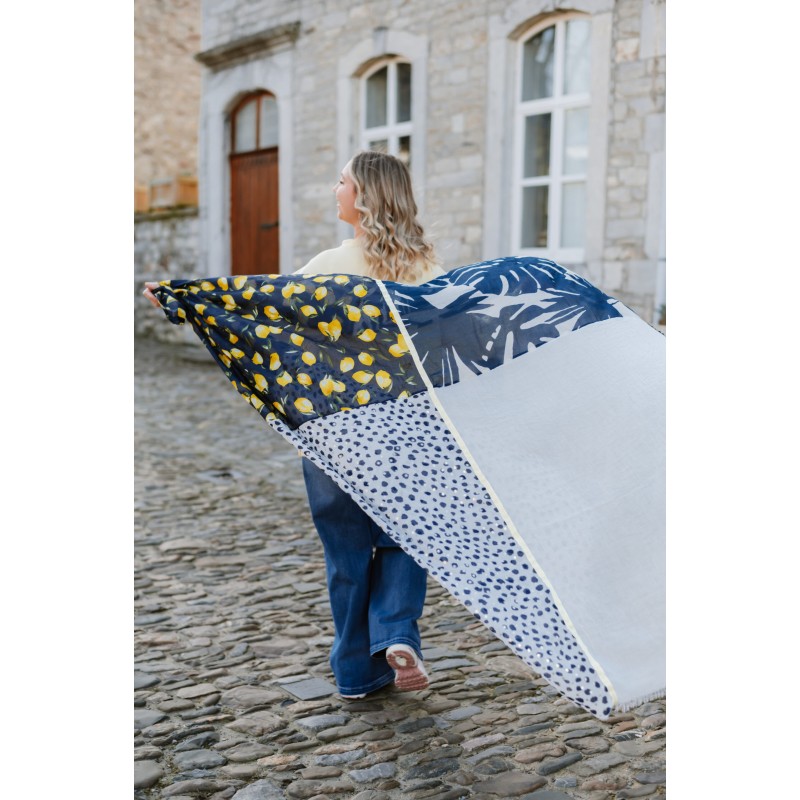 Couleurs dominantes : Bleu, Marine, Blanc, Citron.