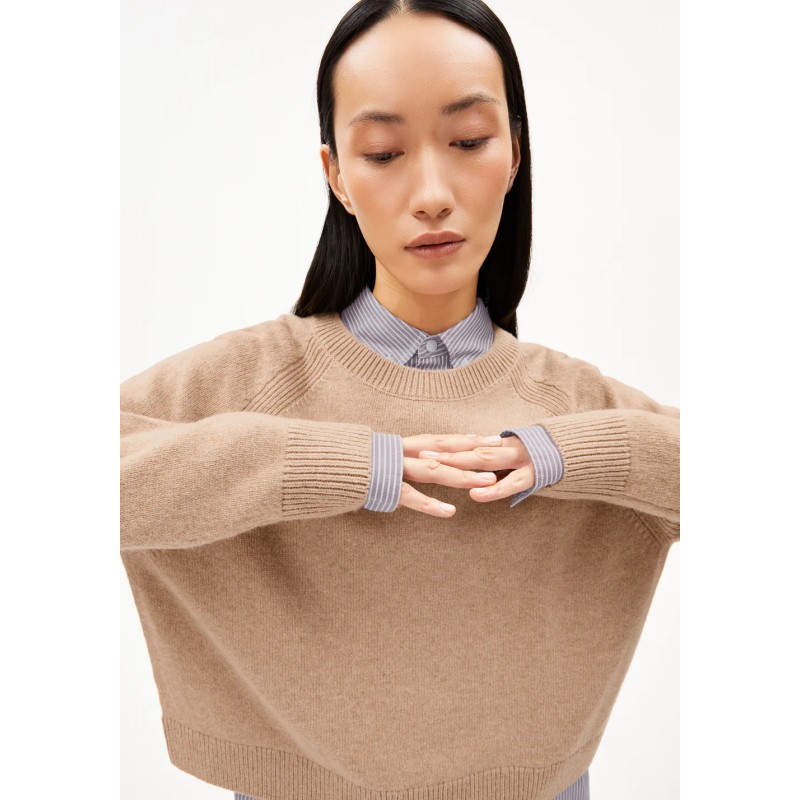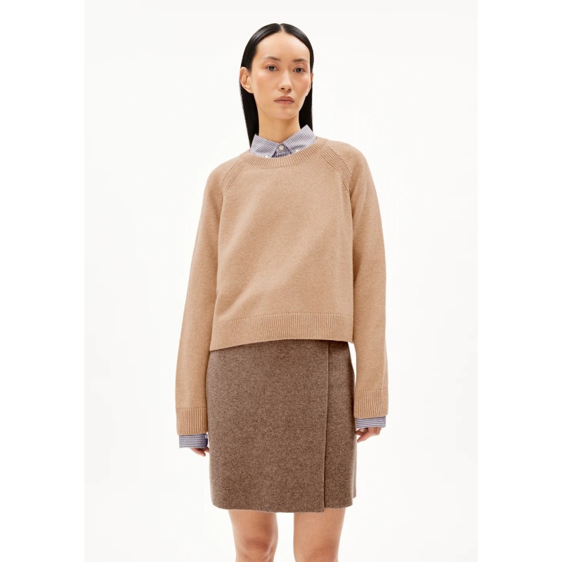 Le pull en maille DILIRIAA REGLANA séduit par sa coupe décontractée courte et sa maille mi-lourde. Confectionné à partir d’un mélange de laine bio et de laine recyclée, il garantit une chaleur agréable tout en étant respirant. Ce pullover uni et intemporel est une valeur sûre pour un confort tout en détente.