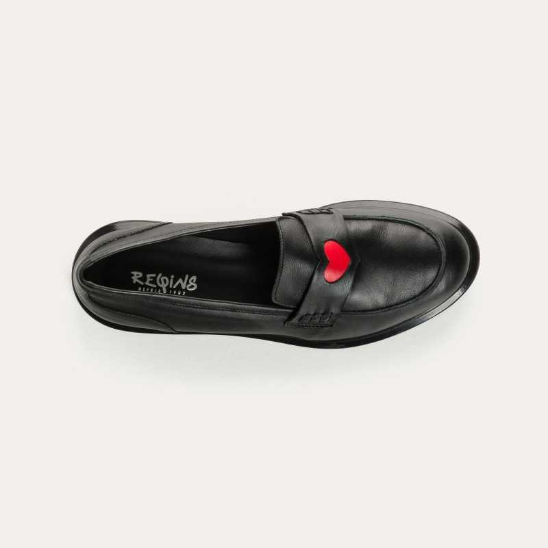Ludiques et stylés, les mocassins Jack revisitent le style collège avec une touche d’originalité. En cuir lisse noir, ils se distinguent par un cœur rouge contrastant en cuir apposé sur la languette pour une note pop et décalée. Avec leur talon de 2,5 cm, ils allient confort et élégance, et se portent avec jean, jupe plissée ou pantalon tailoring pour un look espiègle et affirmé.
