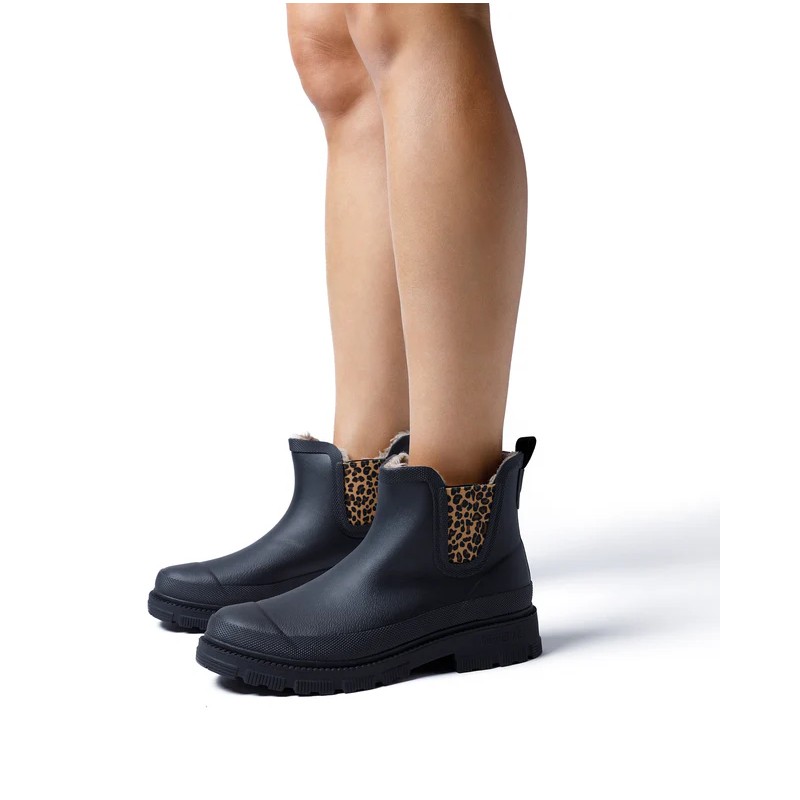 Bottes de pluie Lua Mate Combi Animal Fur de couleur noire. Confectionnées en caoutchouc naturel et élastique avec imprimé animalier. Confortables et chaudes grâce à leur intérieur doublé en fourrure synthétique et leur semelle en EVA. Hauteur de la tige : 12,5 cm. Avec son style Chelsea et sa semelle track, LUA allie esprit classique et look avant-gardiste. Idéal pour celles qui ne passent pas inaperçues.