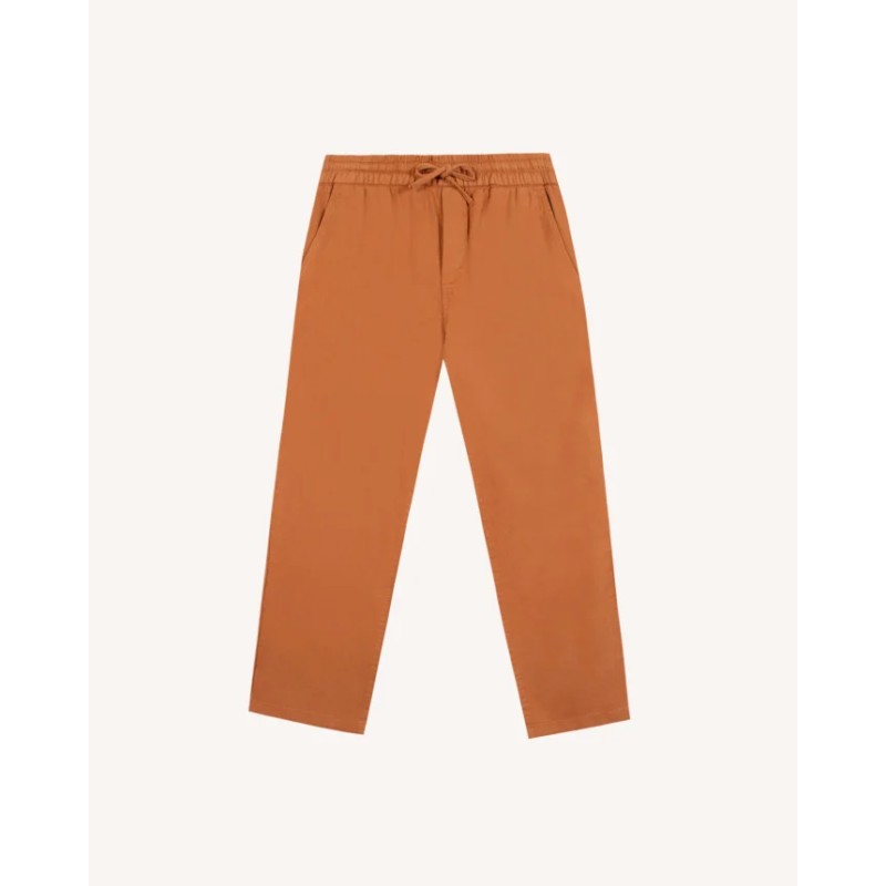 Le pantalon en lin homme brique clair DREUILLE apporte une touche de couleur maîtrisée tout en restant simple à porter. Sa taille élastiquée avec cordon de serrage, inspirée du sportswear, rend la pièce confortable et pratique au quotidien. Le sergé épais et fluide assure un bon tombé et une sensation agréable, sans rigidité. Sa coupe légèrement fuselée à la cheville donne une ligne moderne, qui fonctionne aussi bien avec un t-shirt qu’avec une chemise. Les détails de poches et le logo arbre en feutre complètent l’ensemble avec la signature FAGUO. Un pantalon pensé pour varier des tons neutres, sans en faire trop.