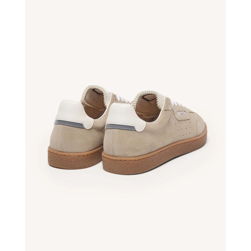 Les baskets en cuir homme beige LUMBO assument leur inspiration sportive avec une allure minimaliste. Fabriquées au Portugal, elles associent cuir suède et semelle intégrant du caoutchouc recyclé, dans une logique de choix plus responsables. Leur esthétique déstructurée leur donne un vrai style, tandis que le confort est assuré par une doublure mesh et une semelle intérieure en liège. Des baskets à porter au quotidien, sans concession sur le style ni sur les convictions.
