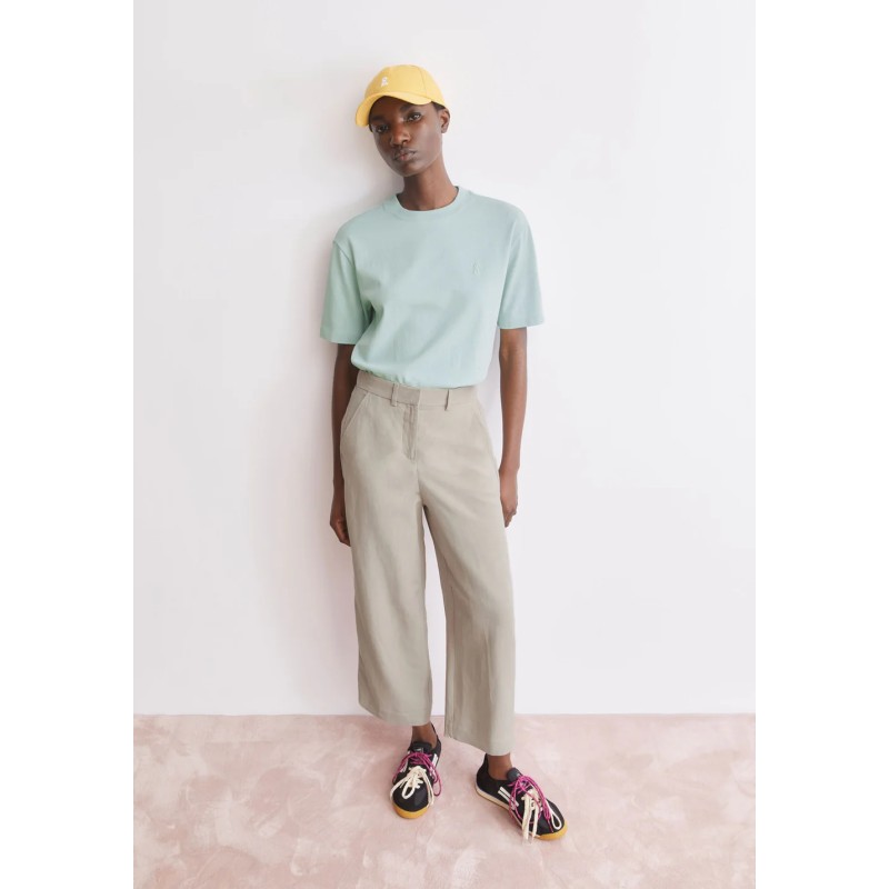 Le pantalon CAARNUS LINO, avec sa taille haute élastiquée et sa jambe large raccourcie, offre une silhouette décontractée. Le mélange léger de viscose LENZING™ ECOVERO™ et de lin est doux au toucher. Des poches latérales complètent son design fonctionnel