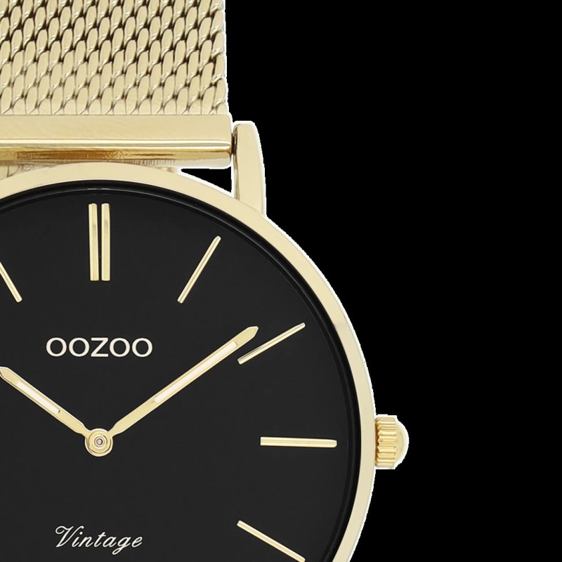 Montre femme Ronde signée OOZOO. Ce modèle rond classique est incontournable. En effet, cette montre avec son boîtier rond en métal couleur or de 32 mm et son cadran couleur noir est un accessoire tendance accompagné d’une touche intemporelle. Agrémenté d’un confortable bracelet en Mesh couleur or et d’un cadran rayures couleur or et d’aiguilles assorti ce modèle est à porter en toute occasion et s’agencera avec élégance à toutes vos tenues. Ce modèle est incontestablement l’accessoire indispensable à avoir au poignet au quotidien. Le verre minéral repose dans un boîtier métallique de 6,9 mm mince en placage IP.