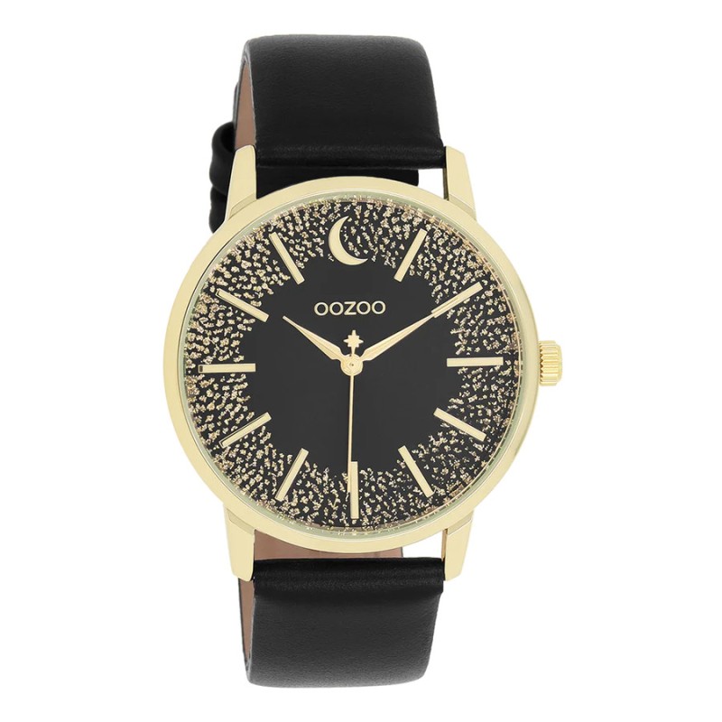Montre femme Ronde signée OOZOO. Ce modèle rond classique est incontournable. Cette montre est ornée d’un bracelet en cuir noir mat et d’un boîtier tendance en métal couleur or de 40 mm de diamètre. Faites sensation avec ce cadran à dégradé étincelant, ses index et aiguilles couleur or. Cette montre est un incontournable de votre garde-robe.