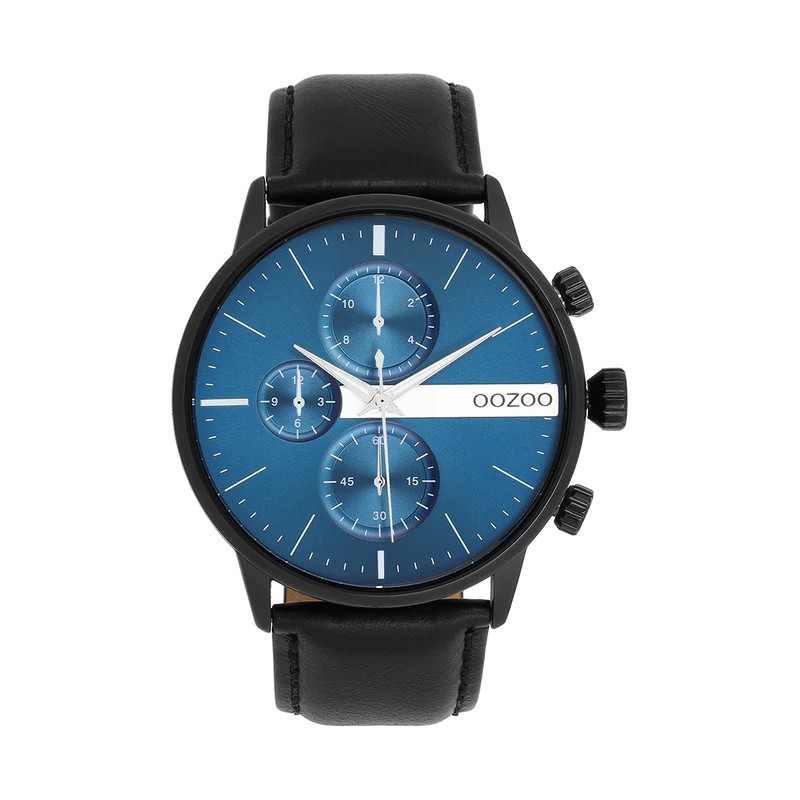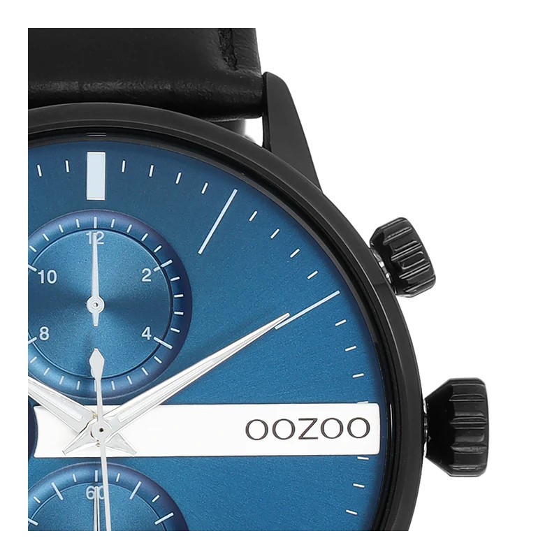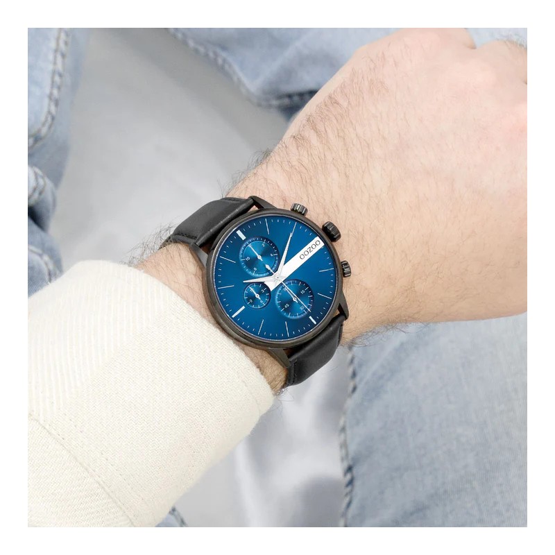 Montre Homme ronde signée OOZOO. Cette nouvelle création (C11229) est enjolivée d’un bracelet en cuir noir cousu et d’un boîtier tendance métal couleur noir mat de 45 mm de diamètre. Faites sensation avec ce cadran bleu, index couleur argent et des aiguilles assorties. Cette montre possède un verre minéral, une plaque arrière en acier inoxydable sans nickel. Elle est équipée un mécanisme japonais 2ATM