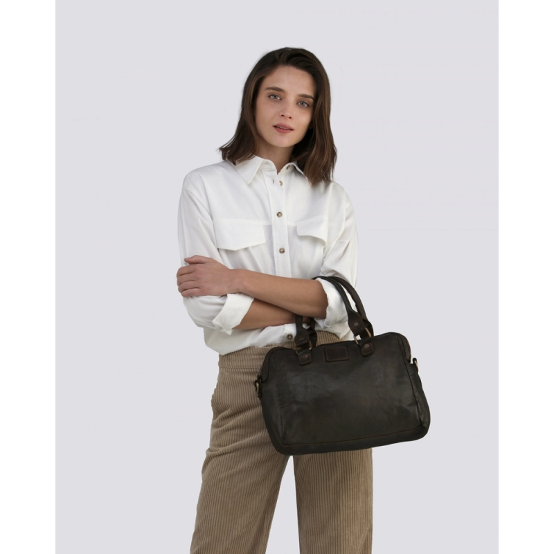 Sac Boston en cuir Noir issu de la marque BIBA. Ce sac bowling Boston appartient à la ligne Héritage de chez BIBA.