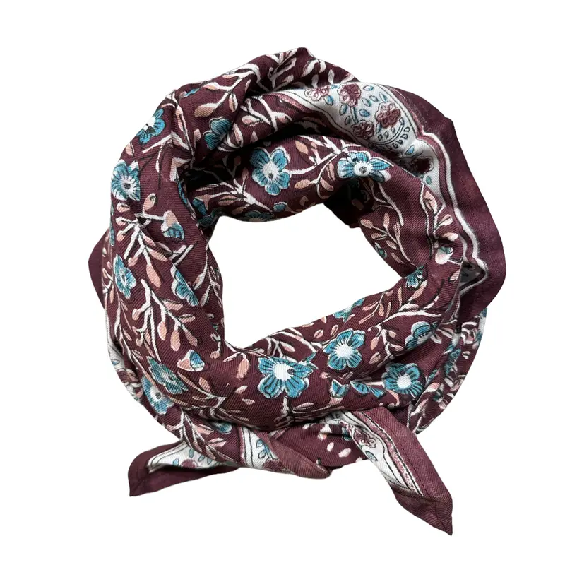 Ce foulard est confectionné artisanalement grâce à la technique indienne du block-print, les couleurs sont réalisées à partir de pigments naturels. Cette confection manuelle peut entraîner certaines irrégularités qui en font le charme en le rendant unique ♡