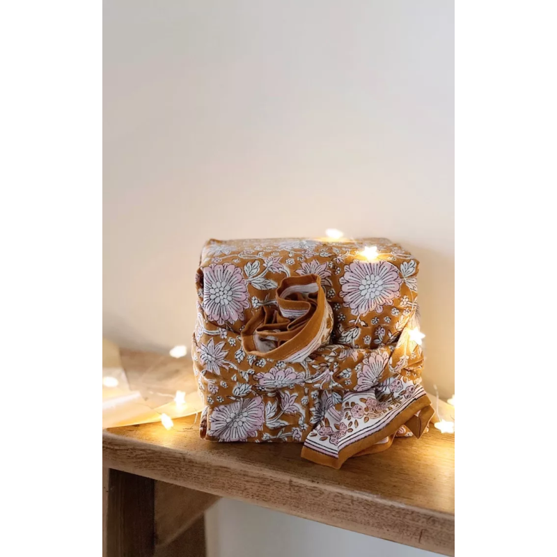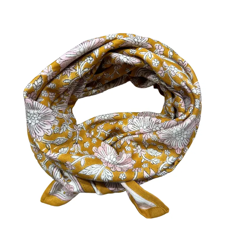 Ce foulard est confectionné artisanalement grâce à la technique indienne du block-print, les couleurs sont réalisées à partir de pigments naturels. Cette confection manuelle peut entraîner certaines irrégularités qui en font le charme en le rendant unique ♡