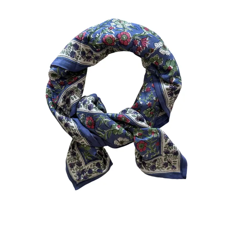 Ce foulard très souple et doux est confectionné artisanalement grâce à la technique indienne du block-print, les couleurs sont réalisées à partir de pigments naturels