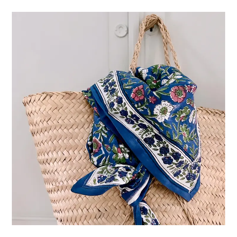 Ce foulard est confectionné artisanalement grâce à la technique indienne du block-print, les couleurs sont réalisées à partir de pigments naturels. Cette confection manuelle peut entraîner certaines irrégularités qui en font le charme en le rendant unique ♡