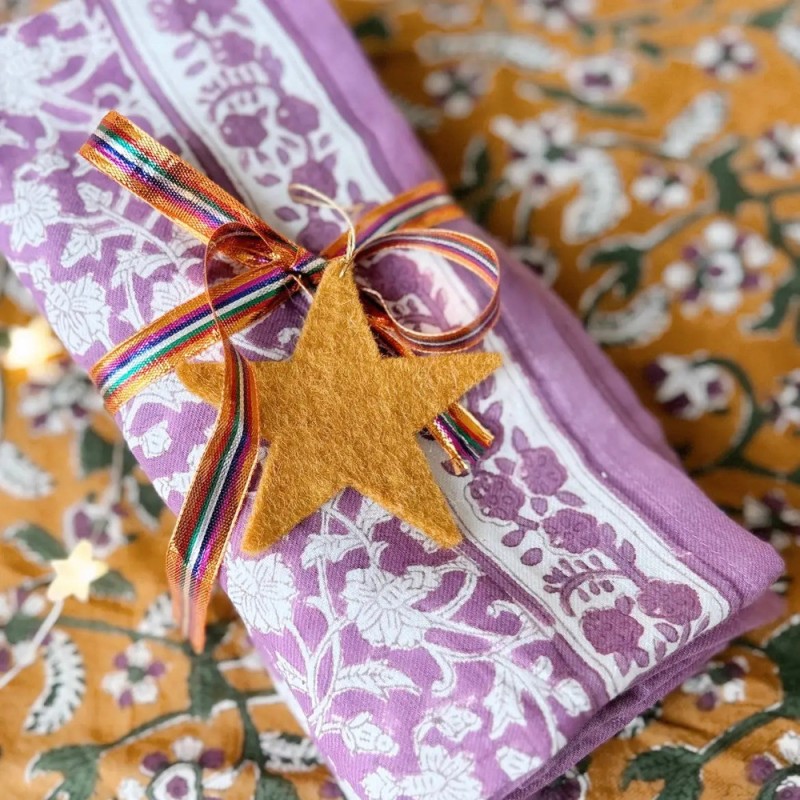 Ce foulard est confectionné artisanalement grâce à la technique indienne du block-print, les couleurs sont réalisées à partir de pigments naturels. Cette confection manuelle peut entraîner certaines irrégularités qui en font le charme en le rendant unique ♡