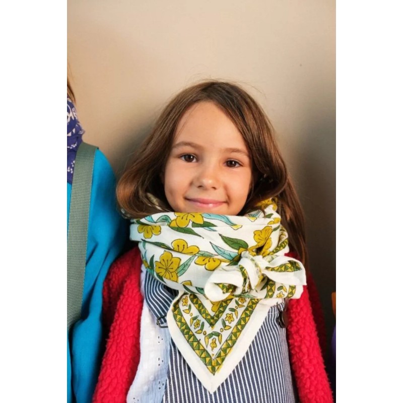 Ce foulard est confectionné artisanalement grâce à la technique indienne du block-print, les couleurs sont réalisées à partir de pigments naturels. Cette confection manuelle peut entraîner certaines irrégularités qui en font le charme en le rendant unique ♡