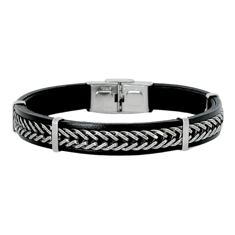 Bracelet Homme Alice Acier et Cuir noir.
