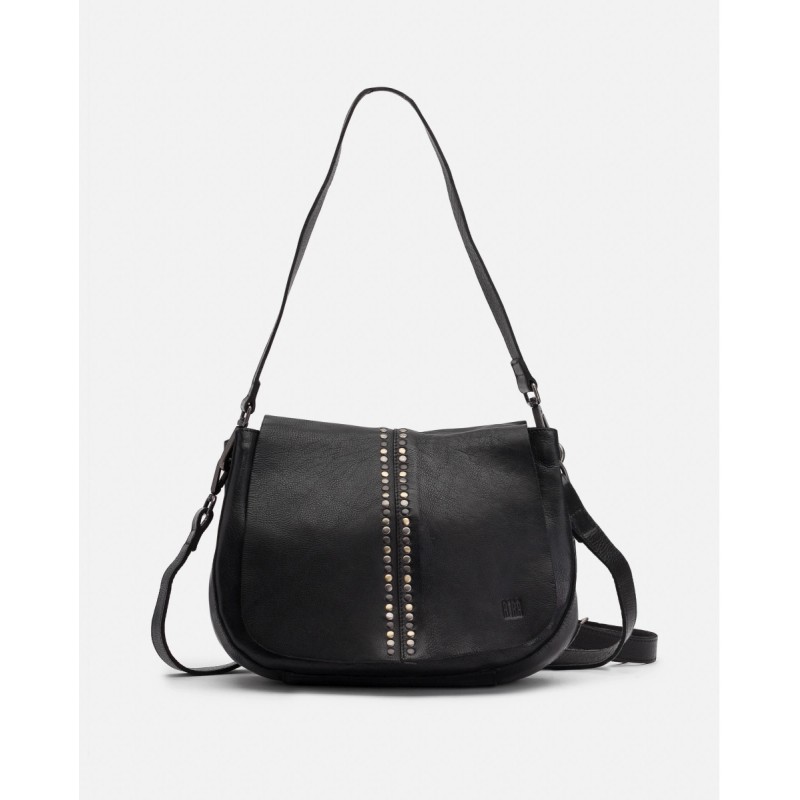 Sac Bandoulière Hancock en cuir Noir issu de la marque BIBA composé d’un rabat clouté. Ce sac bandoulière Hancock appartient à la ligne Héritage de chez BIBA.