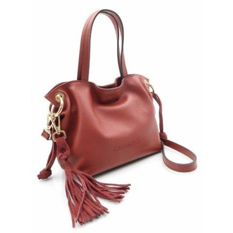 Sac à main issu de la marque CARAMELO composé de cuir Rouille et de croute de cuir de la même teinte. Ce sac est livré avec une bandoulière en cuir Rouille.