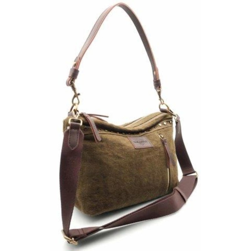 Sac porté travers issu de la marque CARAMELO composé de Tissu Kaki. Ce sac est livré avec une bandoulière épaisse Marron.