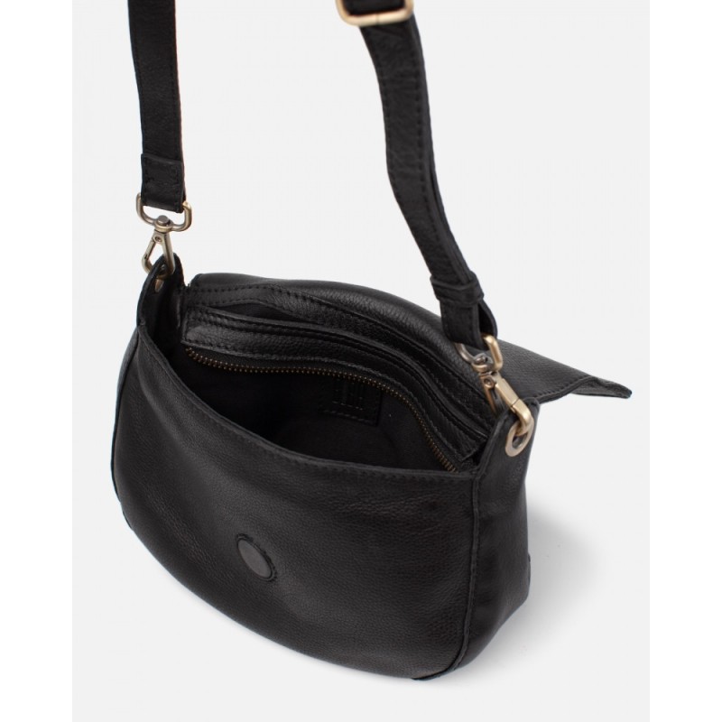 Sac Bandoulière Cody en cuir de vachette lavé Noir issu de la marque BIBA. Une finitions manuelles complexes de clous et de découpe laser sur le rabat et la bandoulière, cette dernière étant amovible. Fermeture zippée, bandoulière réglable et amovible, poches extérieures et intérieures, et doublure en coton.
