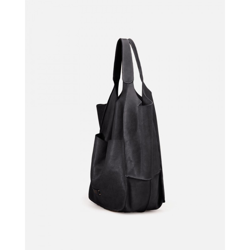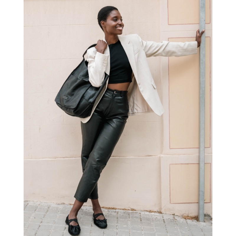 Sac Cabas Homer en cuir noir issu de la marque BIBA en cuir de vachette lavé et tanné végétal. Fermeture pression.