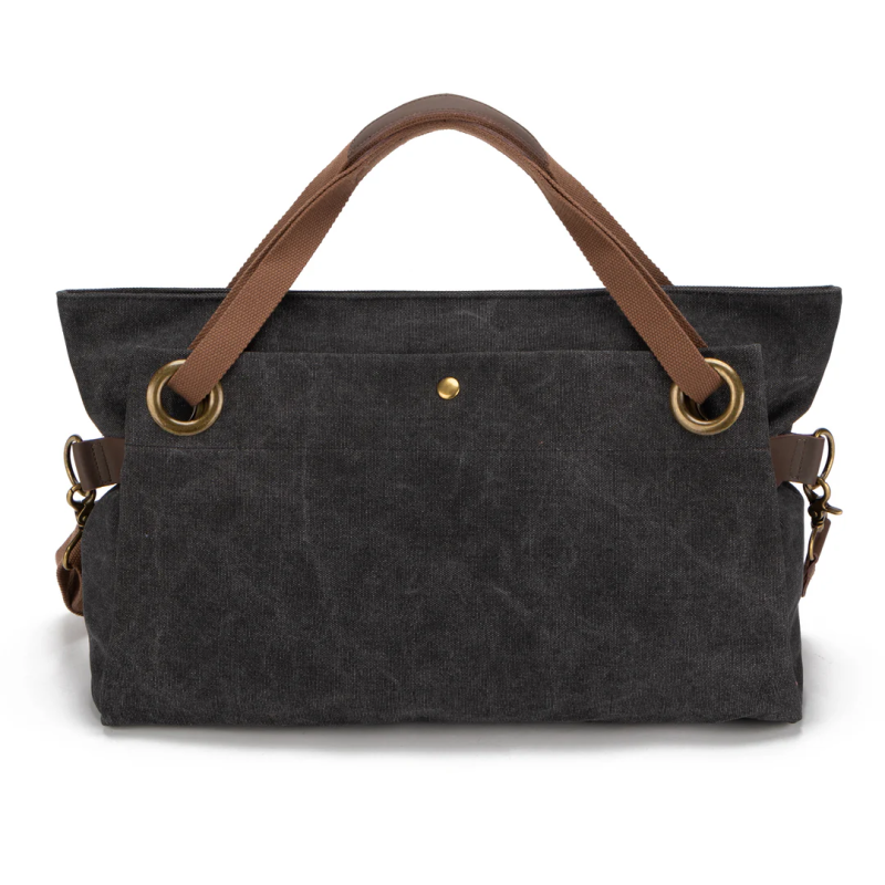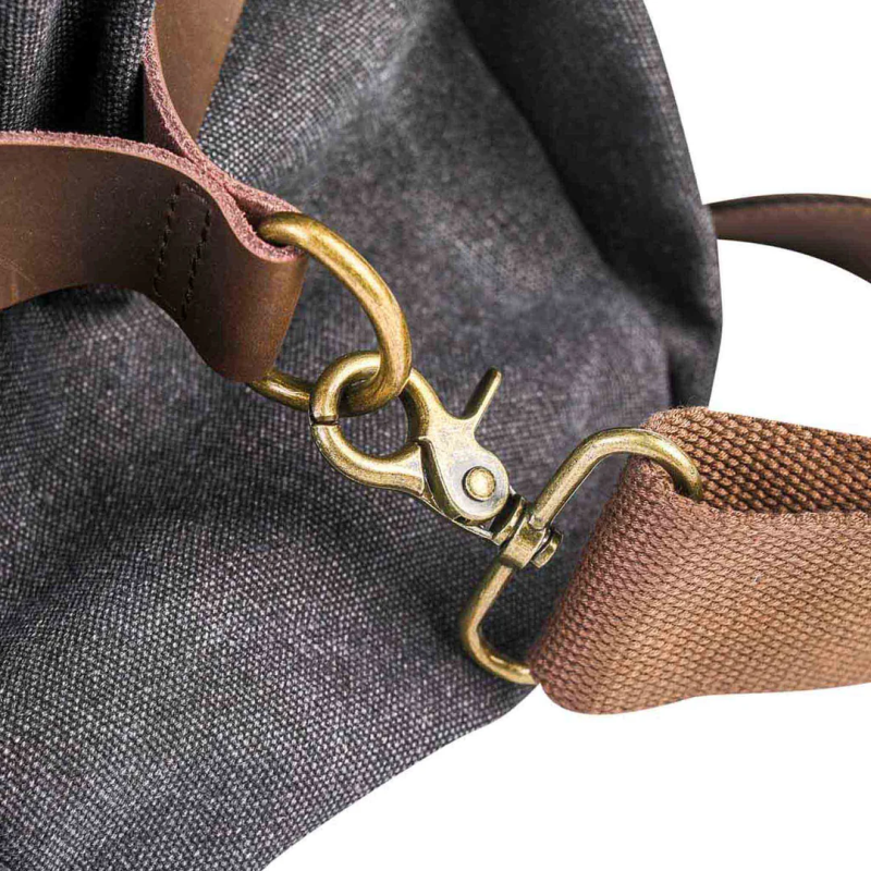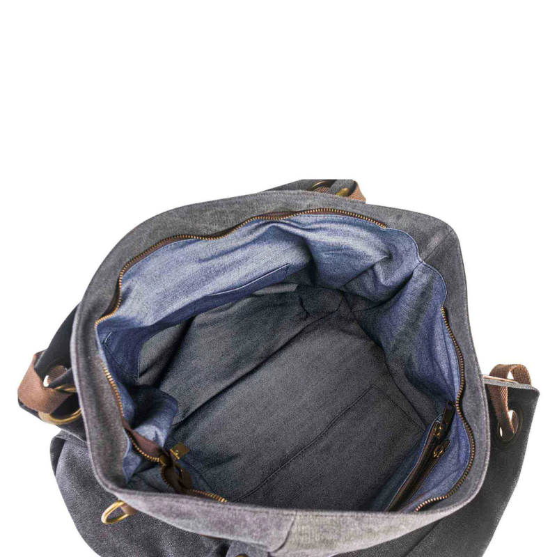 Conçu en toile de coton délavée et en croûte de cuir, ce sac offre un contact doux et naturel. Les anses, gainées en toile et en cuir, permettent un confort optimal à porter. Le sac comprend quatre poches intérieures dont deux zippées, une grande poche sur la face arrière avec un bouton aimanté, et une grande poche supplémentaire sur la face avant avec fermeture en garrot.